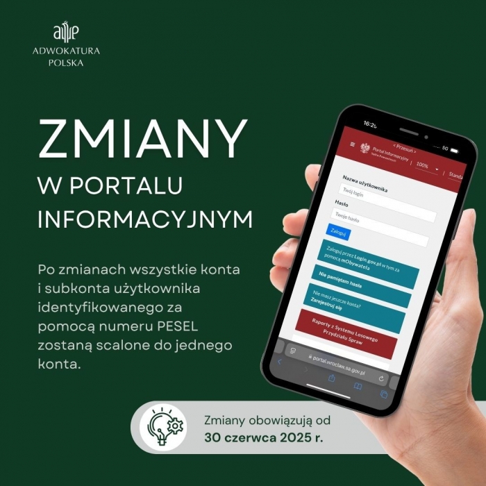 - Z dniem 30 czerwca 2025 roku w Portalu Informacyjnym Sądów Powszechnych wprowadzono zmiany mające na celu usprawnienie działania portalu, zwiększenie komfortu oraz bezpieczeństwa użytkowników w zakresie logowania i dostępu do spraw sądowych.