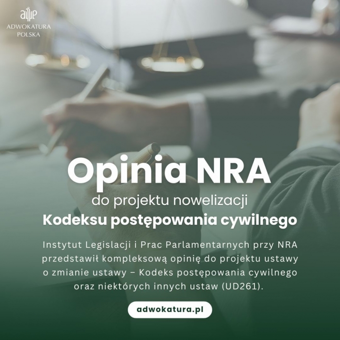 - Instytut Legislacji i Prac Parlamentarnych przy Naczelnej Rady Adwokackiej przedstawił kompleksową opinię do projektu ustawy o zmianie ustawy – Kodeks postępowania cywilnego oraz niektórych innych ustaw (UD261).