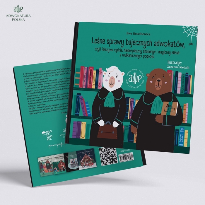 - „Leśne sprawy bajecznych adwokatów, czyli fałszywa opinia, niebezpieczny challenge i magiczny eliksir z wulkanicznego popiołu” to książka o prawie z dziecięcej perspektywy. Pokazuje, że ważne są zasady, które pomagają ludziom żyć nie tylko razem, ale też mądrzej oraz lepiej.