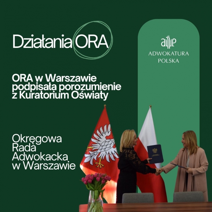 - Porozumienie podpisały dziekan Okręgowej Rady Adwokackiej w Warszawie adw. dr Katarzyna Gajowniczek-Pruszyńska oraz Wioletta Krzyżanowska - Mazowiecka Kurator Oświaty.